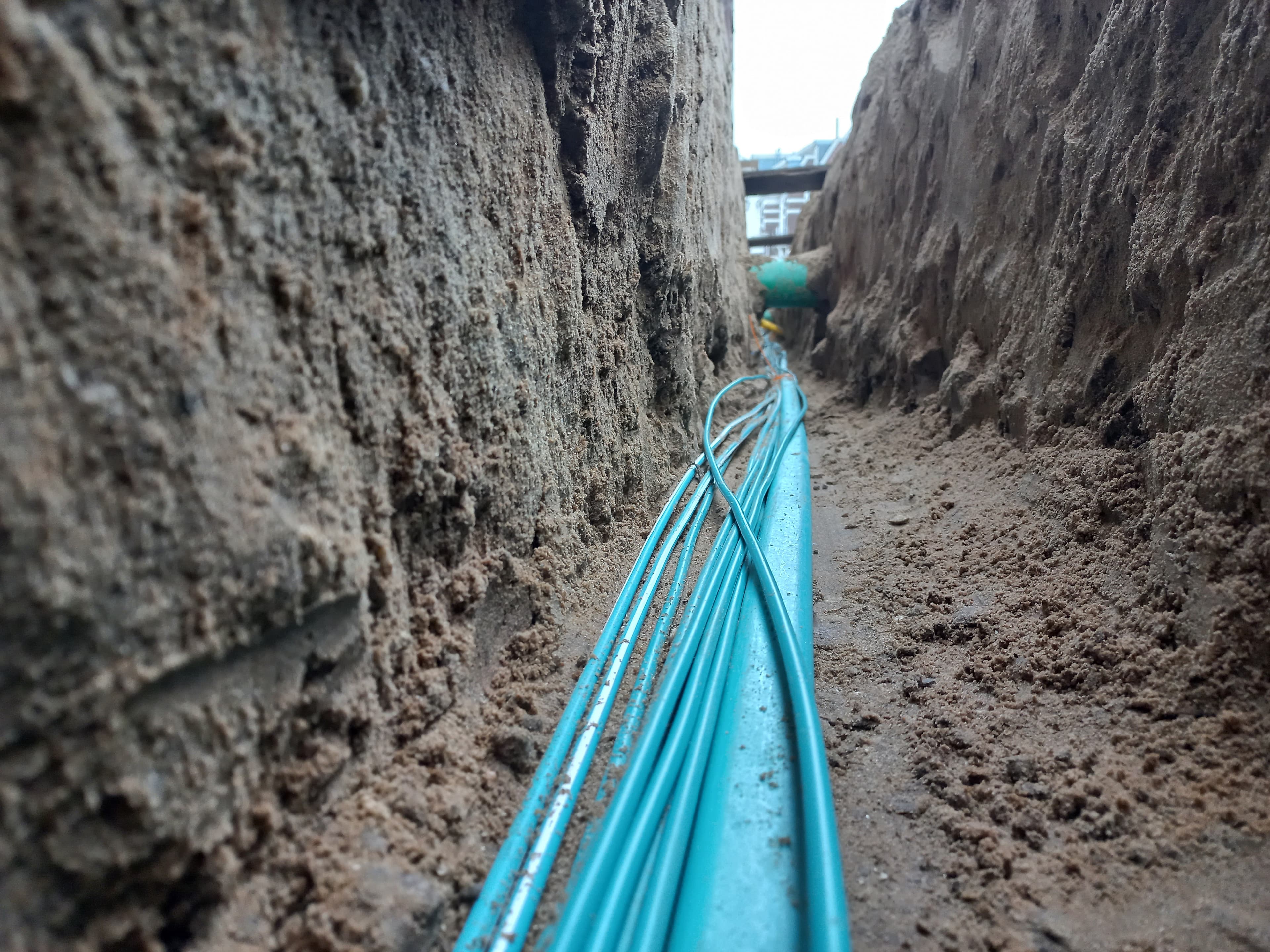 Onze aannemers doen een Klic (Kabels en Leidingen Informatie Centrum) melding voordat ze beginnen met graven. Op basis hiervan ontvangen zij gegevens van het Kadaster om de kabels en leidingen van een locatie in te zien. En zo weten ze dus waar er wél en waar er níet gegraven kan worden. Als het te graven traject in de buurt komt van middenspanning of hoogspanning stroomkabels, of hogedruk gasleidingen, worden er proefsleuven gegraven volgens de CROW500-richtlijn. Dit is een nieuwe wettelijke richtlijn om zorgvuldig te graven en geeft informatie over onder- en bovengrondse netten. Deze richtlijn moet ervoor zorgen dat er minder graafschades ontstaan. Bovendien wordt er altijd handmatig gegraven als er bestaande kabels of leidingen in de buurt zijn. Bij het maken van huisaansluitingen worden bestaande leidingen altijd voorzichtig handmatig vrij gelegd.
